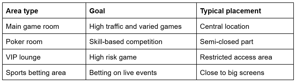 The interior spaces of the casino follow a conscious layout. Designers place board games near central aisles to increase visibility. And oh yeah Slot machines often take up the largest floor space due to revenue efficiency. High-capacity rooms are located in special sections to attract experienced players.